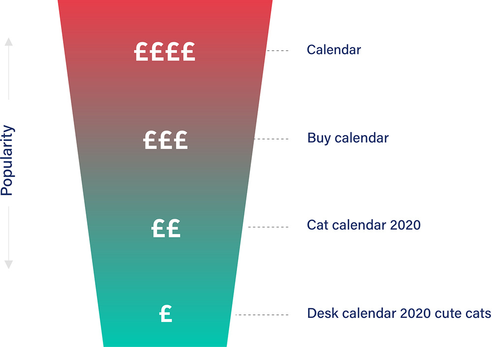 Vague, conventional terms lay at the top – for example, the keyword “calendar”. In case you’re selling calendars, this would be a natural word to bid on, but this can incorporate heaps of things; phrases, for example, “purchase calendar” & “free calendar” do not offer an exceptionally focused audience.