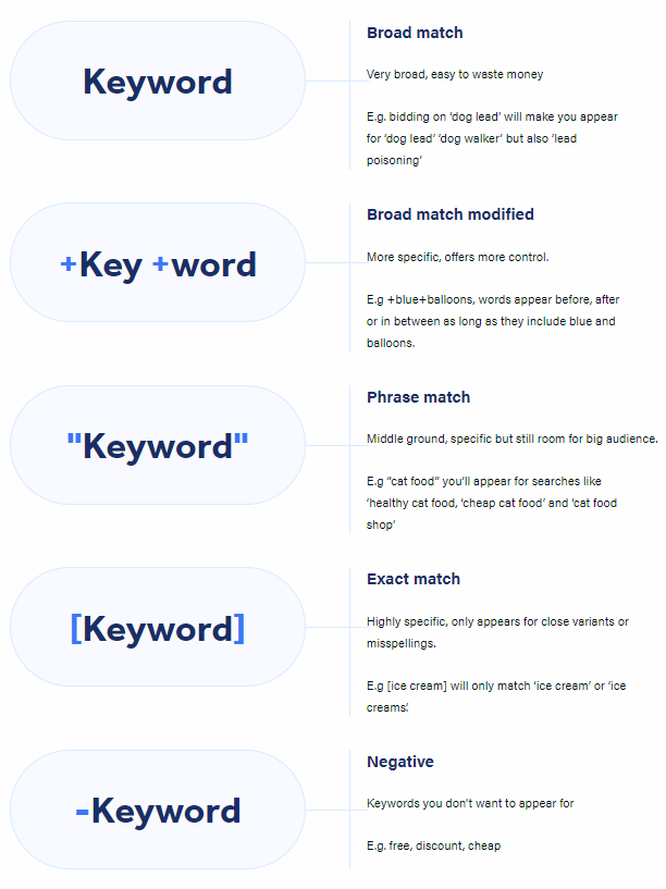 Keyword match types permit you to state how specific you need your searches to be. It’s anything but difficult to waste cash in the event that you don’t utilize them to qualify your search terms.