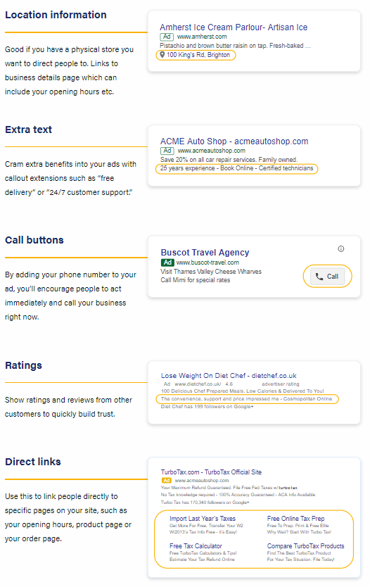 Ad expansions are free & allow you all the more ad space to give individuals more information. They come in numerous structures so you can adopt those that are best for your business.