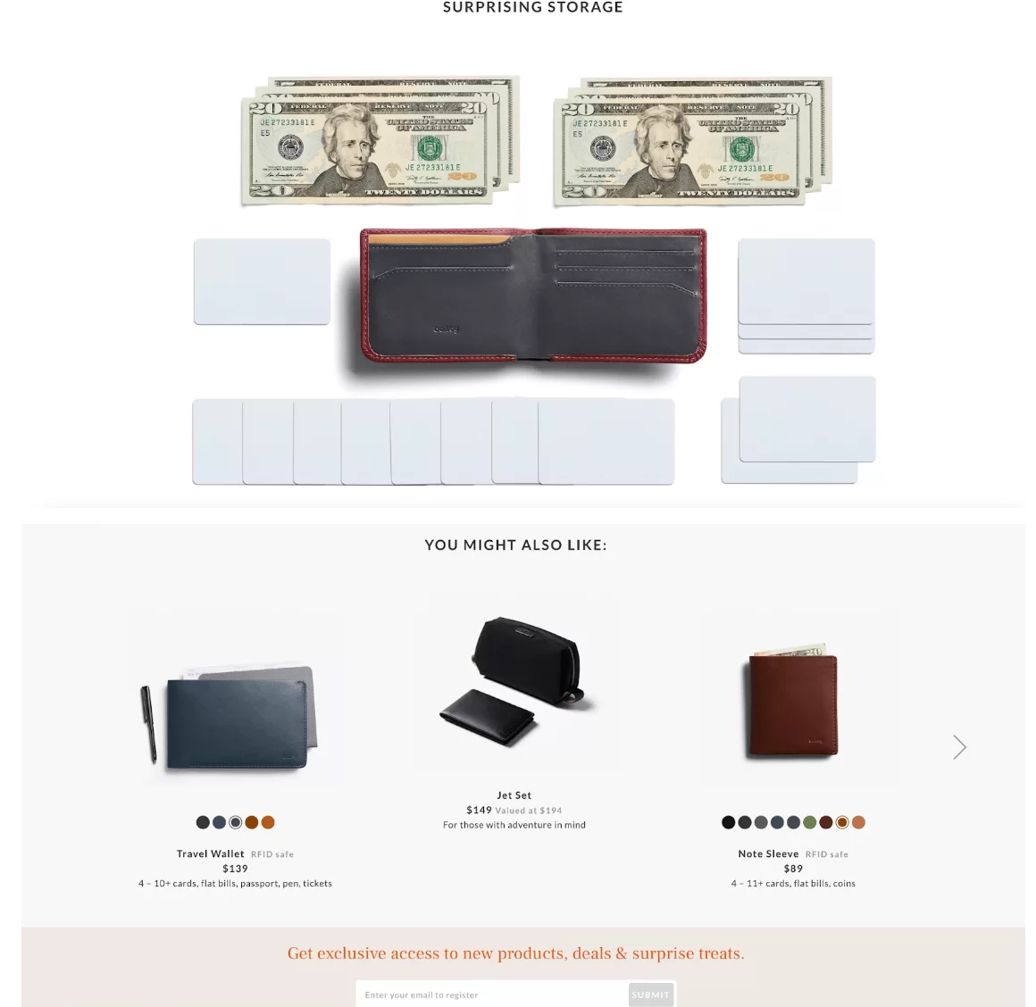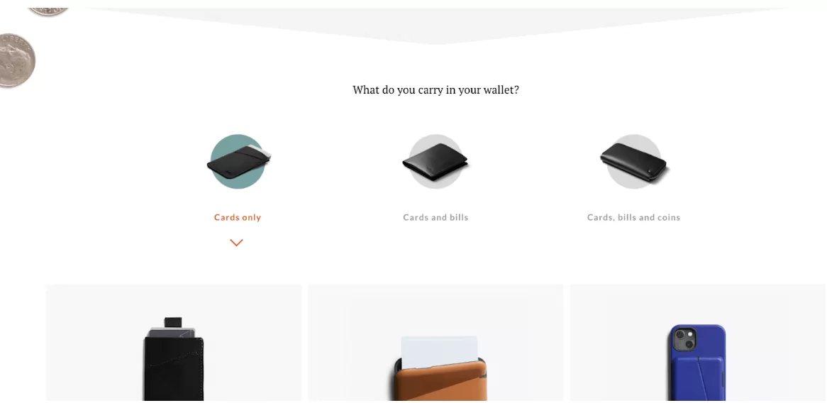 There’s then a personalization element on the page. Here, customers can find the right Bellroy wallets for them based on what they typically carry in their wallets.