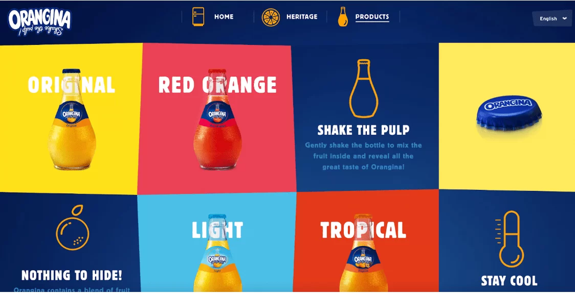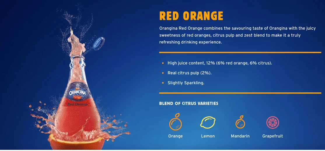 Each product page tells the customer the blend of citrus varieties used for that Orangina drink.