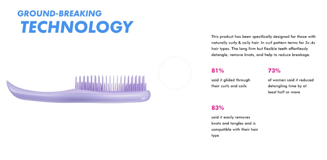 This Tangle Teezer example demonstrates the importance of understanding your target audience and addressing their pain points in your product page design.