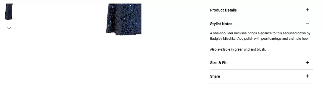 What’s really great about this product page is the stylist’s notes. Customers can get ideas for how they can dress up their outfits.