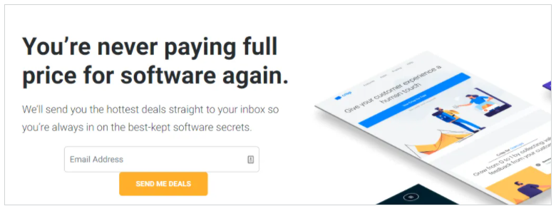 Or then again take a gander at AppSumo, which uses phrasing like “Never”, “hottest”, & “best” kept software secrets.