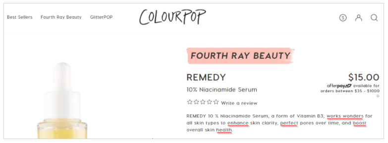 Another example is cosmetics brand ColourPop, which in a real sense names their items after trigger words, for example, their Niacinamide Serum named “remedy”.