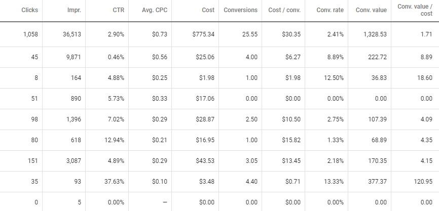 Well, as you’re earning less than $1 for each $1 spent, achieving a ROAS of less than one is a losing effort. The ROAS of 3.0 is showing that for each $1 we spent on ad in that ad group, we acquired $3 back from that conversion (a 200% return).